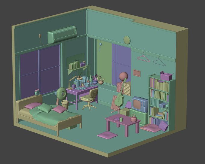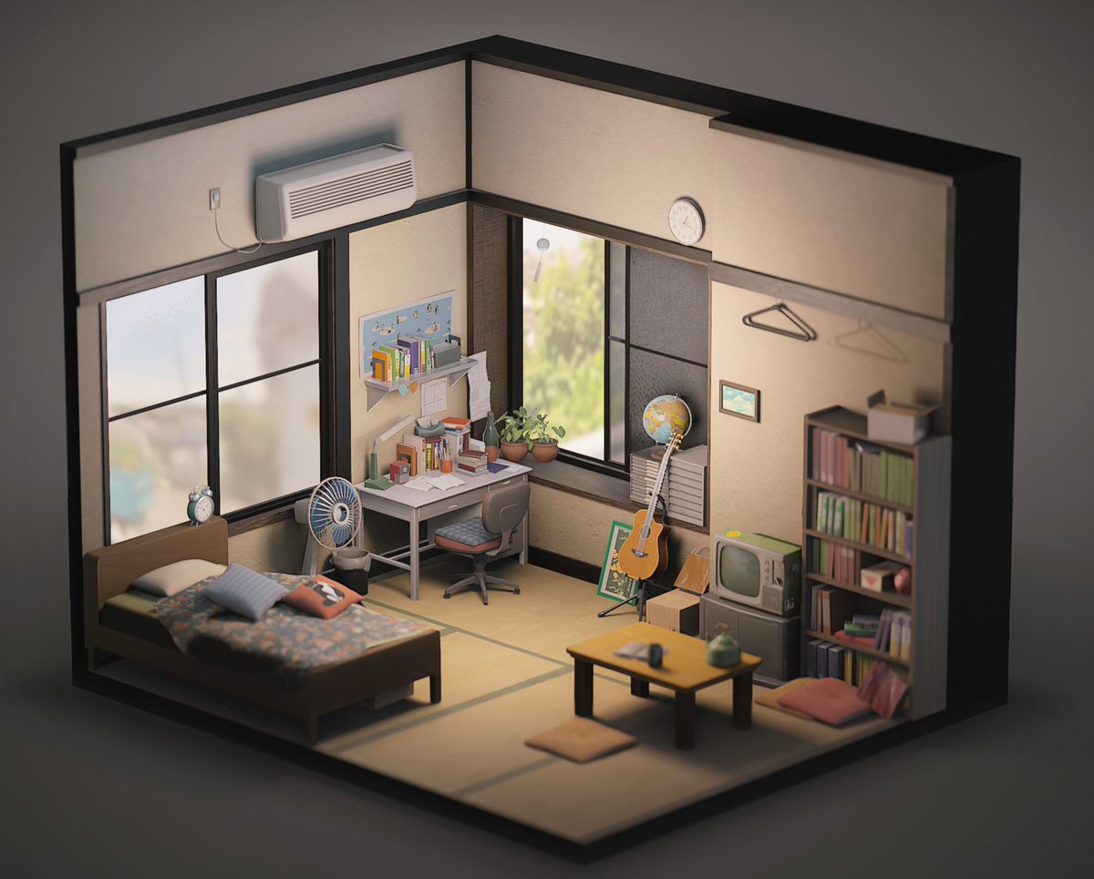 45 457 受験生の部屋👨🎓 日常を切り取ったようなノスタルジックな雰囲気を目指した…! #b3d #Blender3d 22/10/23 17:26