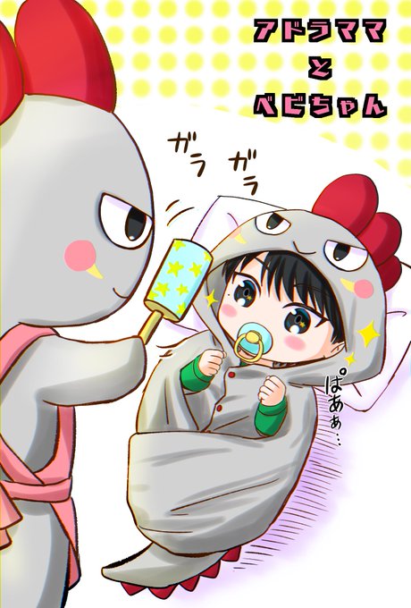 タイミングを逃し続けて上げそこなっていたママアドラちゃんとベビtknくん (なりきりセットがおくるみに見えて仕方なかった時の落書き)