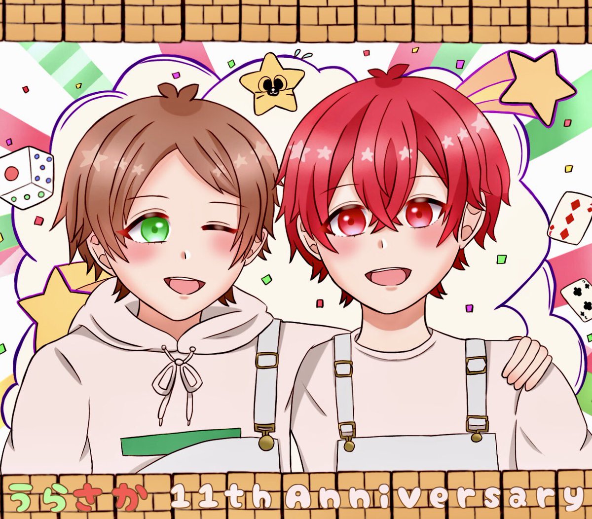 ✩.*˚うらさか11周年✩.*˚ うらさか11周年おめでとうございます✨ お2人の仲の良さにいつも元気と癒しをもらっています⸜❤︎⸝ これからも大好きです💚❤️ #うらさか11周年 #うらたぬ王国の美術館 #坂田です