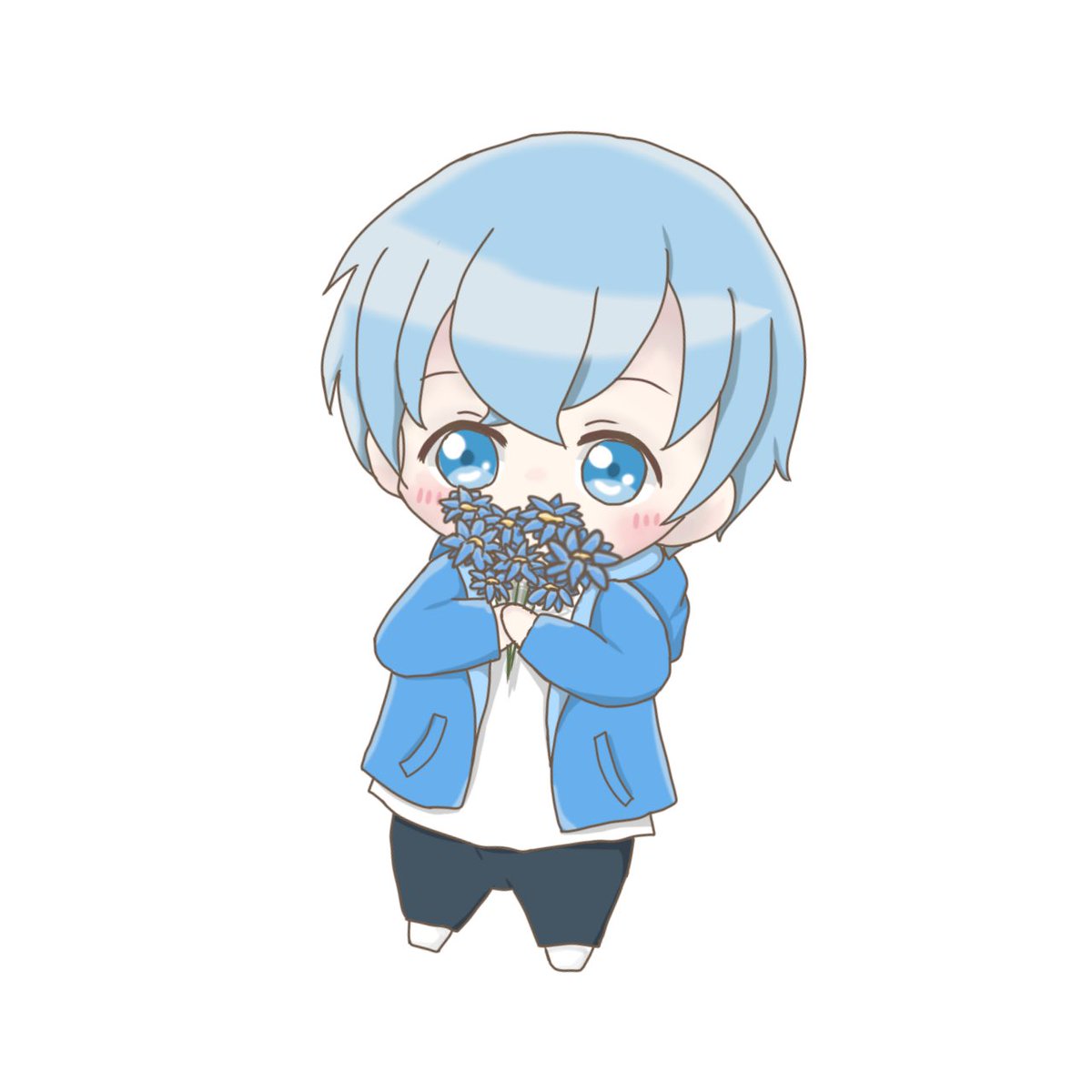 『花束潤す雫は ポジティブ誘う蒼い道標』 ポジティブブルー / ころんくん #ころんくん #ころんぎゃらりー