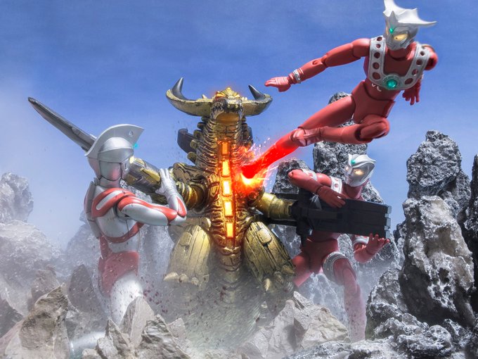 今度は発光させて撮った。発光させると角は絶えず回る。照明をうちで一番明るくしてもブレる。ISOの数値をデカくして誤魔化すが、それだと画像が粗くなる。シャッタースピード1/60でもうちの照明では少しブレている。もう1段速くすると暗い。精一杯です。 #アルティメットルミナス #ウルトラセブン