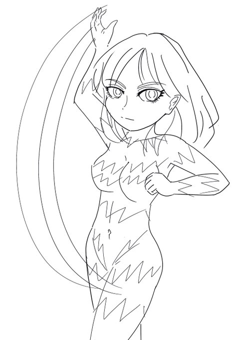 #このタグを見た人はラフ画とその完成絵を見せる #光速エスパー #オリジナル 私はレイヤー節約でラフを削除している事が多いです🧝♀️ 残っていたものを上げます💁♀️ こういう人も居る、とご参考になれれば幸いです🍀🙆♀️ 右端の青髪の子は湖川友謙さん風を意識してますっ🙋♀️ ↑石を投げないで下さい💦
