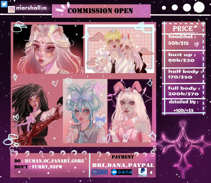 💗RTs are highly appreciated💗 hello! i'm opening my commission with a limited slot for local and internasional.please dm if you're interested Carrd : marshallen.carrd.co #opencommissions @CmsnArtist_Id #commissionopen #artidn #artistsontwitter #zonauang