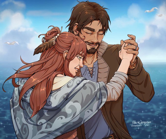 Commission of gorgeous Izala and Orrin for @Vesprynna !😍🥰 Fun fact, these two get married! #DNDArtist #ArtCommission
