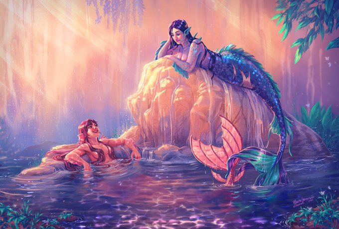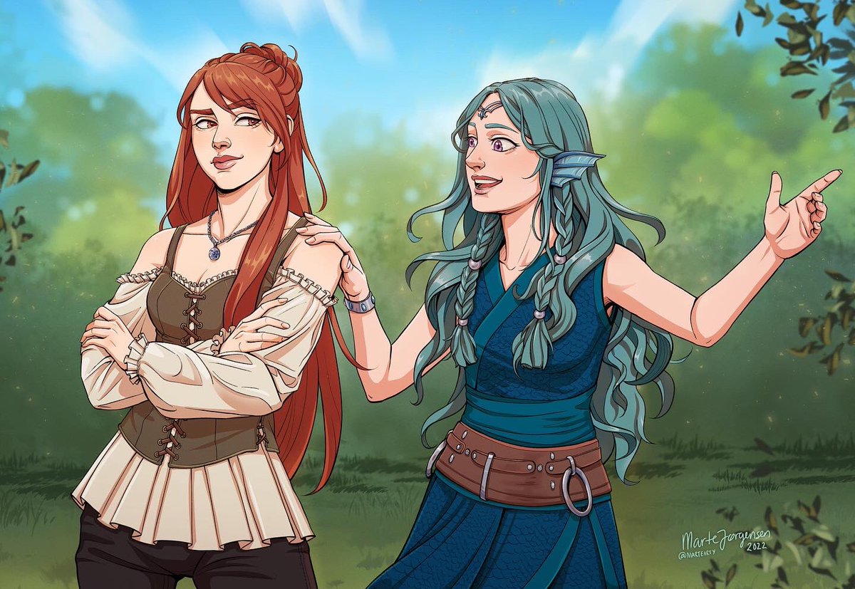 Gorgeous gorgeous girls, look sad during sunset.🥲☀️ Thank you so much for commissioning me @viodreamer ❤️ #DnDcharacter #dndart #characterartist #dndcommission