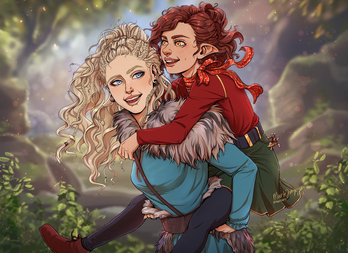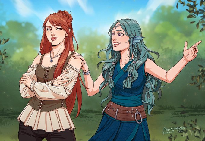 Finally a day off! Let´s head to the market!✨🍃 Venwyn and Torvi are best friends, and love shenanigans💃 Thank you sm to my commissioners @venwyn and her friend!🥰☘️🍃 #characterartist #dndartist #artcommission #dndart