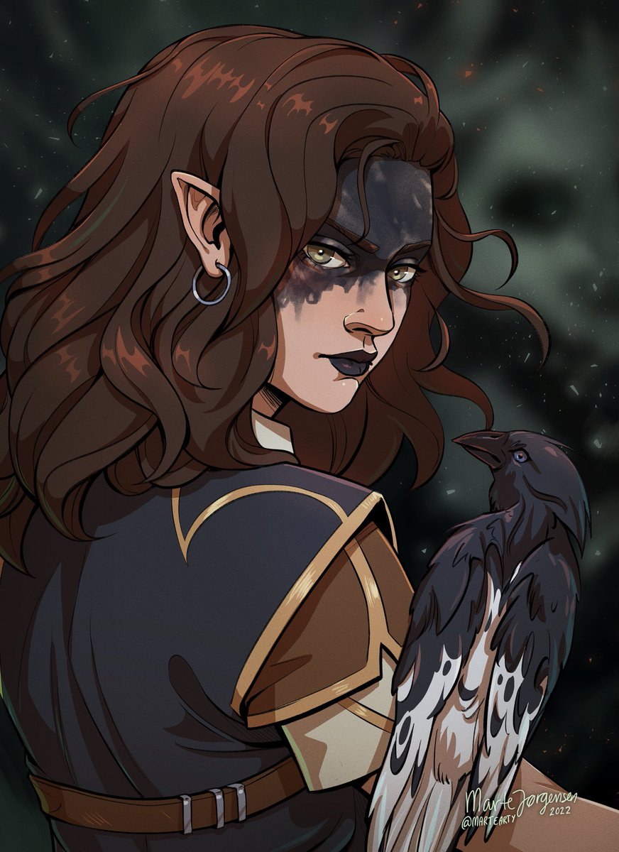 Riri is an awesome elf sorcerer, who has turned a bit evil… just a little.👀 Thank you so much to my wonderful commissioner❤️❤️ #DnDcharacter #dndart #dndartist #fantasyartist #halfelf #dndcommission