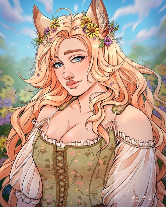 Gorgeous Kira! She is a druid that collects wildflowers and herbs! 🌼🌸🌱 Thank you so much to the wonderful @FallNSkye for commissioning me! ❤️🥰 #dndcommission #artcommission #dndcharacter #characterartist #csp #dndart