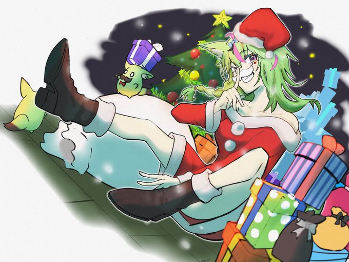 「Merry Christmas」 素敵なクリスマスをありがとう。 寝落ちする前に描けてよかった、、、😴 #絵まる