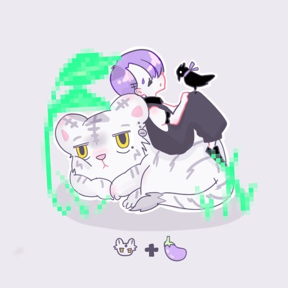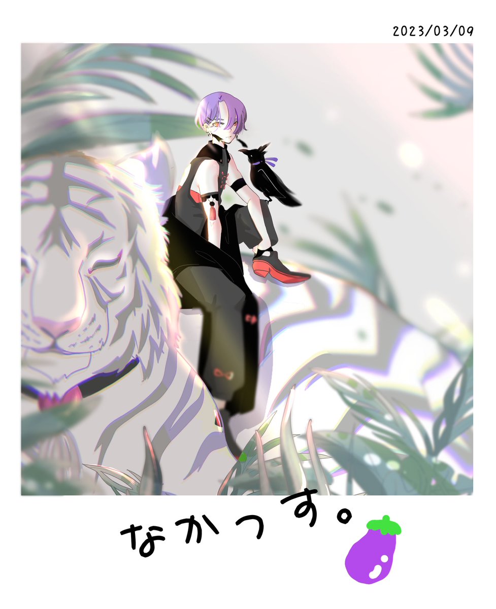 1 22 🍆さんと🐯さん。 #茄子画 23/03/09 23:56