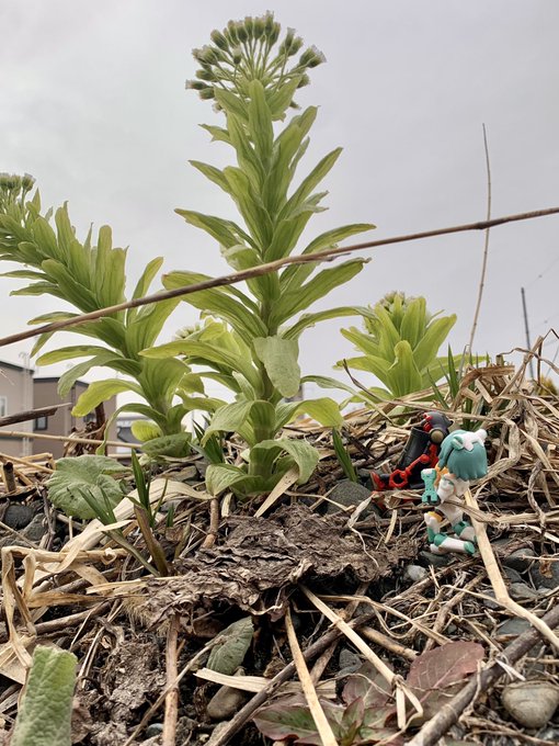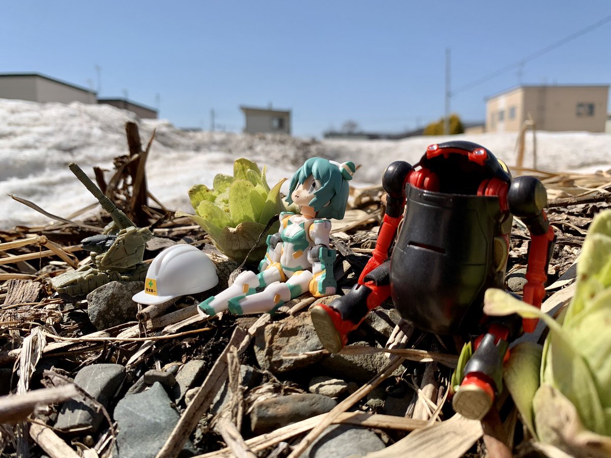 おっきくなったねぇ… 名残雪は残り、桜はまだ咲かないですが、順調に春が育ってます #デスクトップアーミー #メカトロウィーゴ