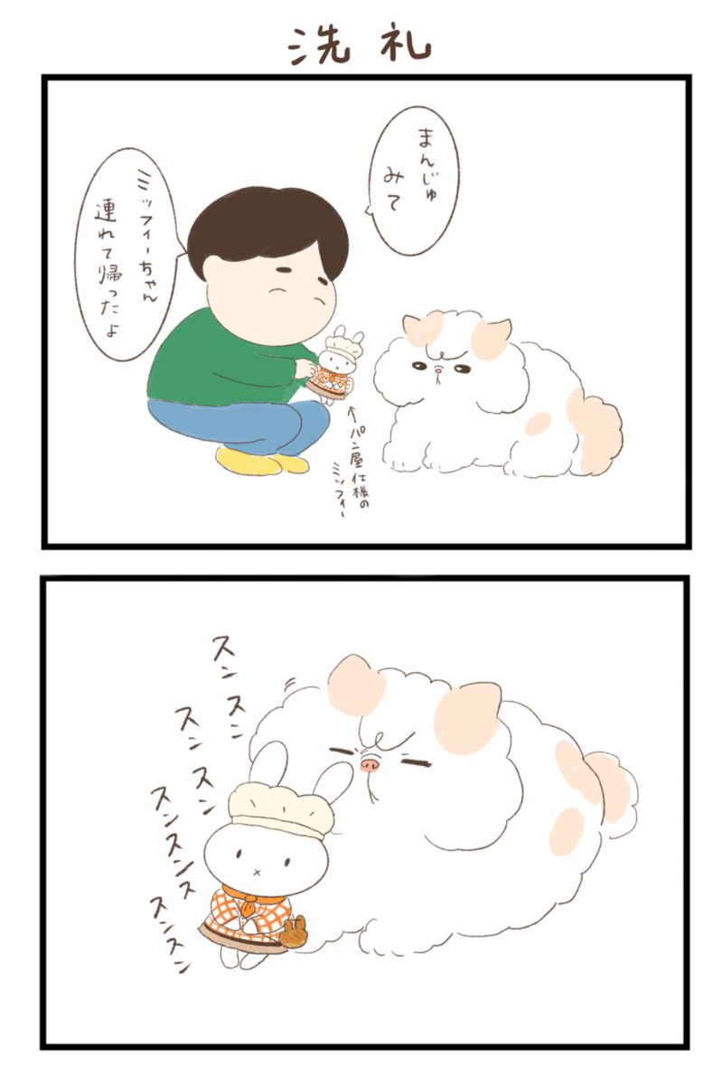 2 15 新入りに洗礼を浴びせる猫、まんじゅ #4コマ #4コマ漫画 #猫 #cat #イラストエッセイ #絵日記 #コミックエッセイ #イラスト #猫のいるくらし #日常 22/08/30 20:04