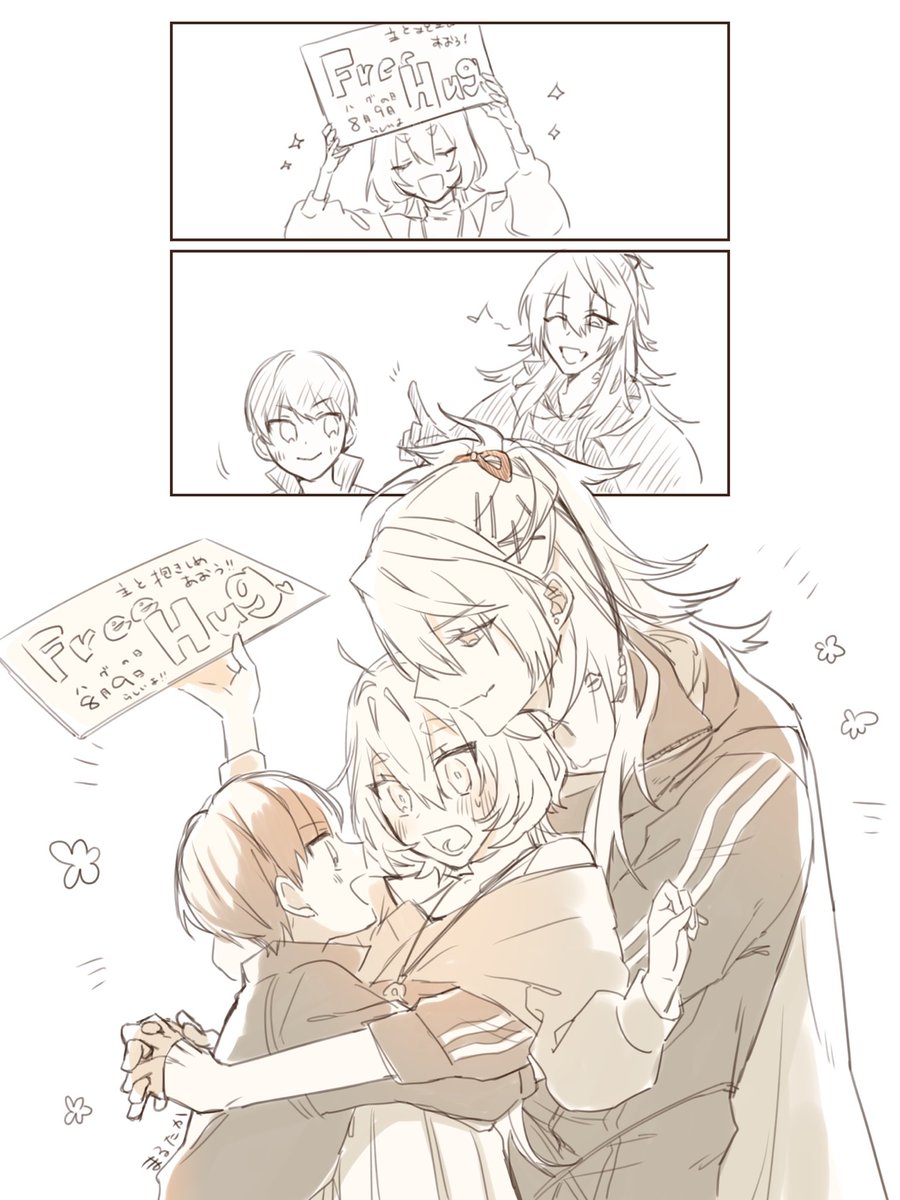 100 884 ハグの日の景光兄弟と審神者🫂💕 「謙信と俺とで挟んで驚かさないかい」 「わかった!どうじにいくんだぞ」 ⚠︎︎顔あり審神者︎︎ ♀ 22/08/09 23:27
