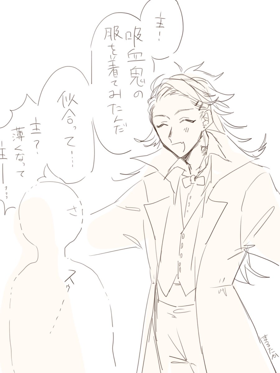 もうすぐハロウィンだね〜こりゅぅ……こっっっ………………スゥ…… (吸血鬼コスさせたかっただけの落書き)