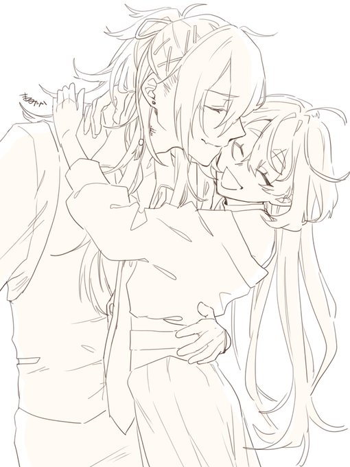 小竜さに / こりゅさに(※顔あり) 審「夫婦っぽい呼び方してみたい」 素敵なSSを元に1部描いてみました☺️リンクはリプにて!ぜひ読んでください🙏 ⚠︎顔あり328、捏造衣装、捏造髪型