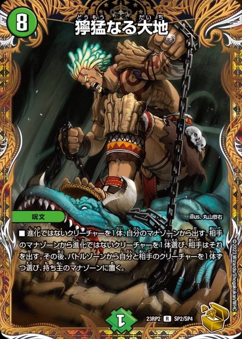 デュエマイラスト、描かせていただきました! 「獰猛なる大地」 6月24日発売だそうです。 イラストレーター時代からの華の仕事。 これまでコラボしてきた名だたるメンバーに名前を並べていただき、とても光栄です。 #デュエマ #デュエチューブ twitter.com/t2duema/status…
