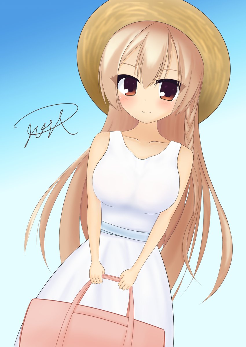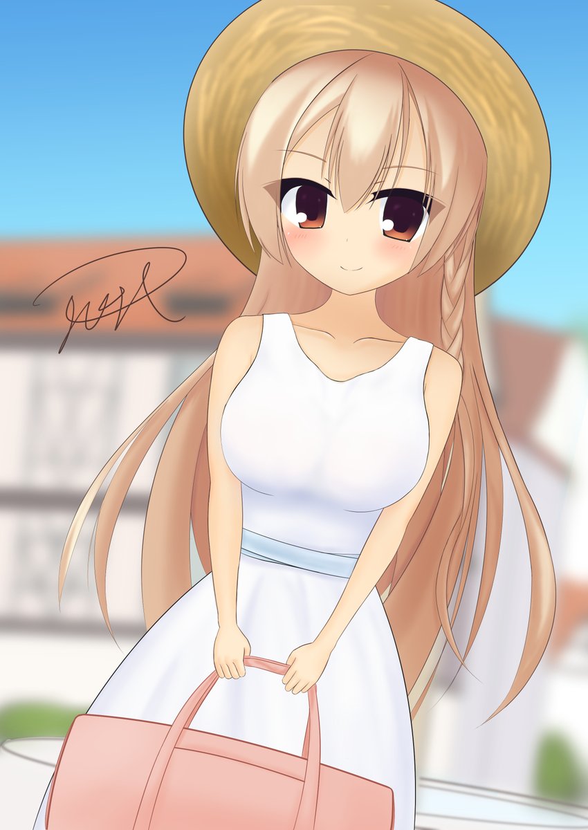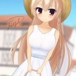 ①旅行前の待ち合わせ 麦わら帽子とワンピース、 この夏、シャーリィと旅行に行ってきますん。 #ゆずソフト #シャーリィ・ウォリック