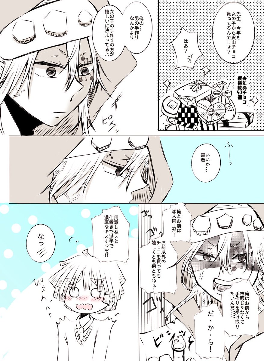 遅ればせながらのバレンタイン宇善漫画です(*ฅ́˘ฅ̀*)♡ #宇善