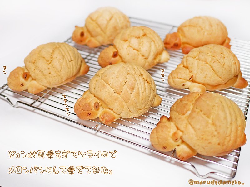 19巻発売おめでとうございます! 再掲ですがジョンのお腹はパンのいい匂いがするそうなので、いっその事メロンパンにしてみました🍞✨ 明日はホットケーキでお絵描きします。 #吸血鬼すぐ死ぬ19巻ムーンは昇る