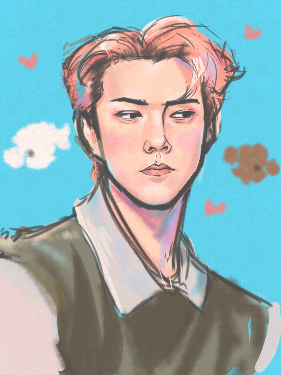 Day 6: lotto Yixing and his lil friend found something pretty while swimming #exotober2020 #lay #exofanart