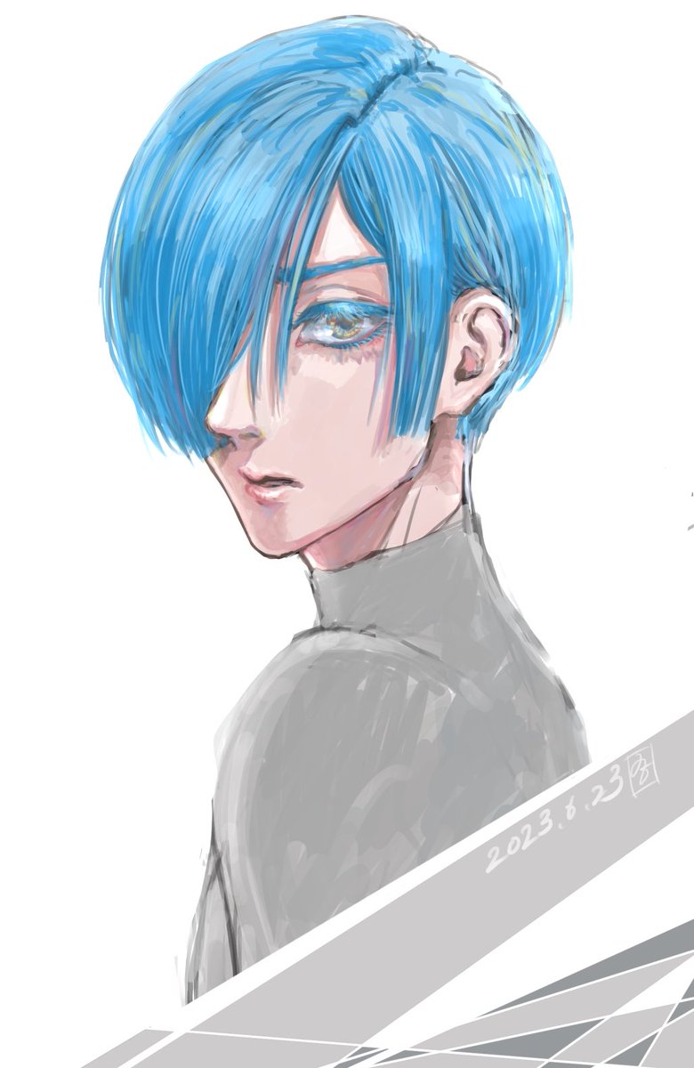 見事にブルーサマーズしか描いてなかった。せめて色のあるものをってなったらこれしかなかったね!!! なんかこう、初めて描いたの(一枚目)から並べると変化が…ちょっと…うん、反省した。 #2023年自分が選ぶ今年上半期の4枚