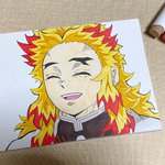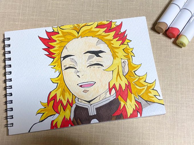 遊郭編まであと15分!! イラストは無限列車最後の笑顔😊 (血が出てないバージョン) #鬼滅の刃 #遊郭編 #宇髄天元 #派手派手 #煉獄杏寿郎 #イラスト #模写
