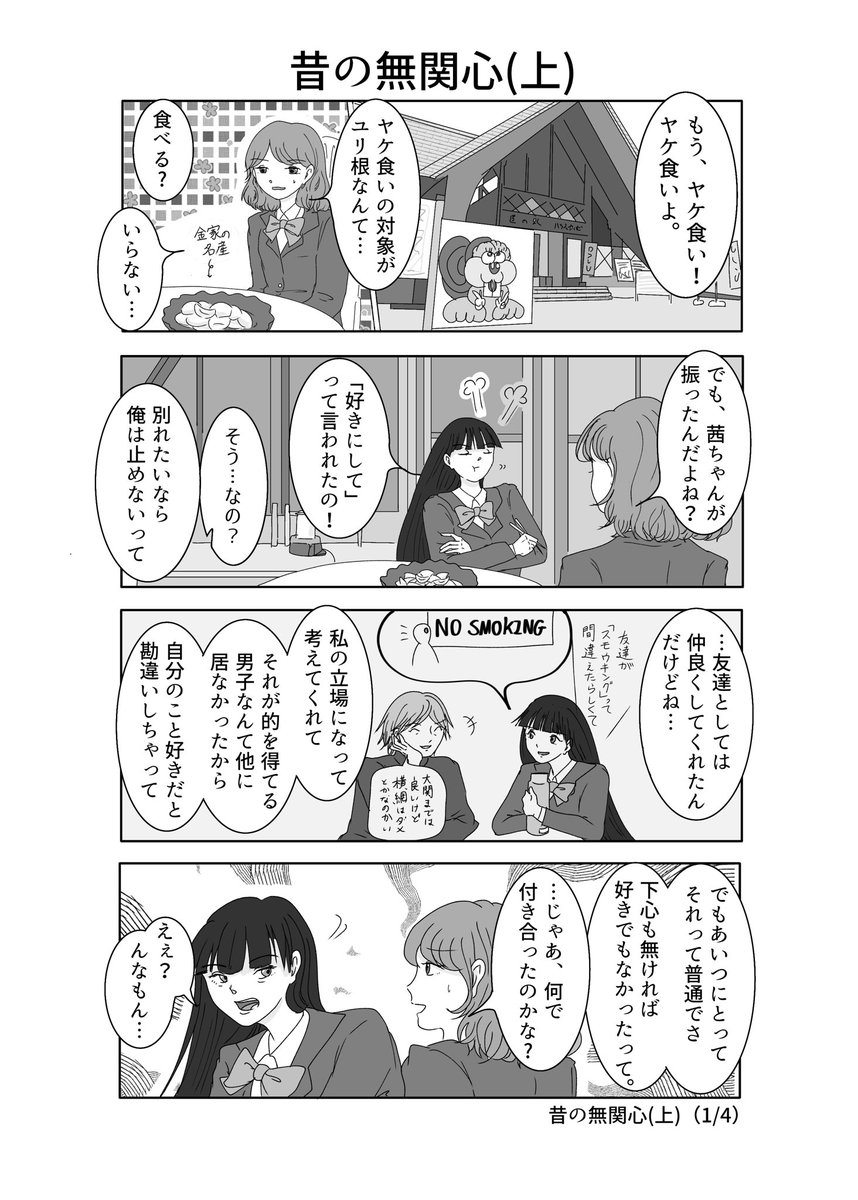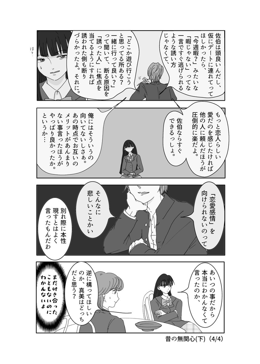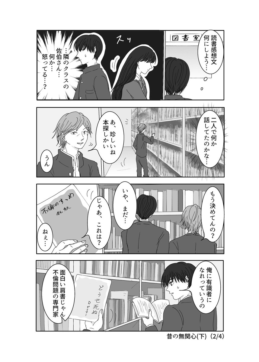 「昔の無関心(下)」 #漫画が読めるハッシュタグ ベラベラと長尺で何だぁ‼︎ …と言いたいが、高校生の内って、付き合って何したいんでしょう…目的とかは無く、衝動的なもの?夫婦の練習? 理屈で考えすぎなんでしょうけど、素人なので未だにわからん😂