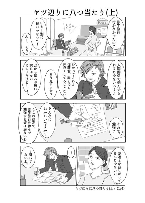 Aの証明① (1/3) | まる柿 #pixiv pixiv.net/artworks/94409… 頑張って冒頭描き直してまとめました! 50p位ですが、まだ1/3です。 小ボケ6割の明るいお話です。 不穏な終わり方ですけど、ハッピーエンドの予定!珍しく! #創作漫画 #漫画が読めるハッシュタグ #アロマンティック #アセクシャル