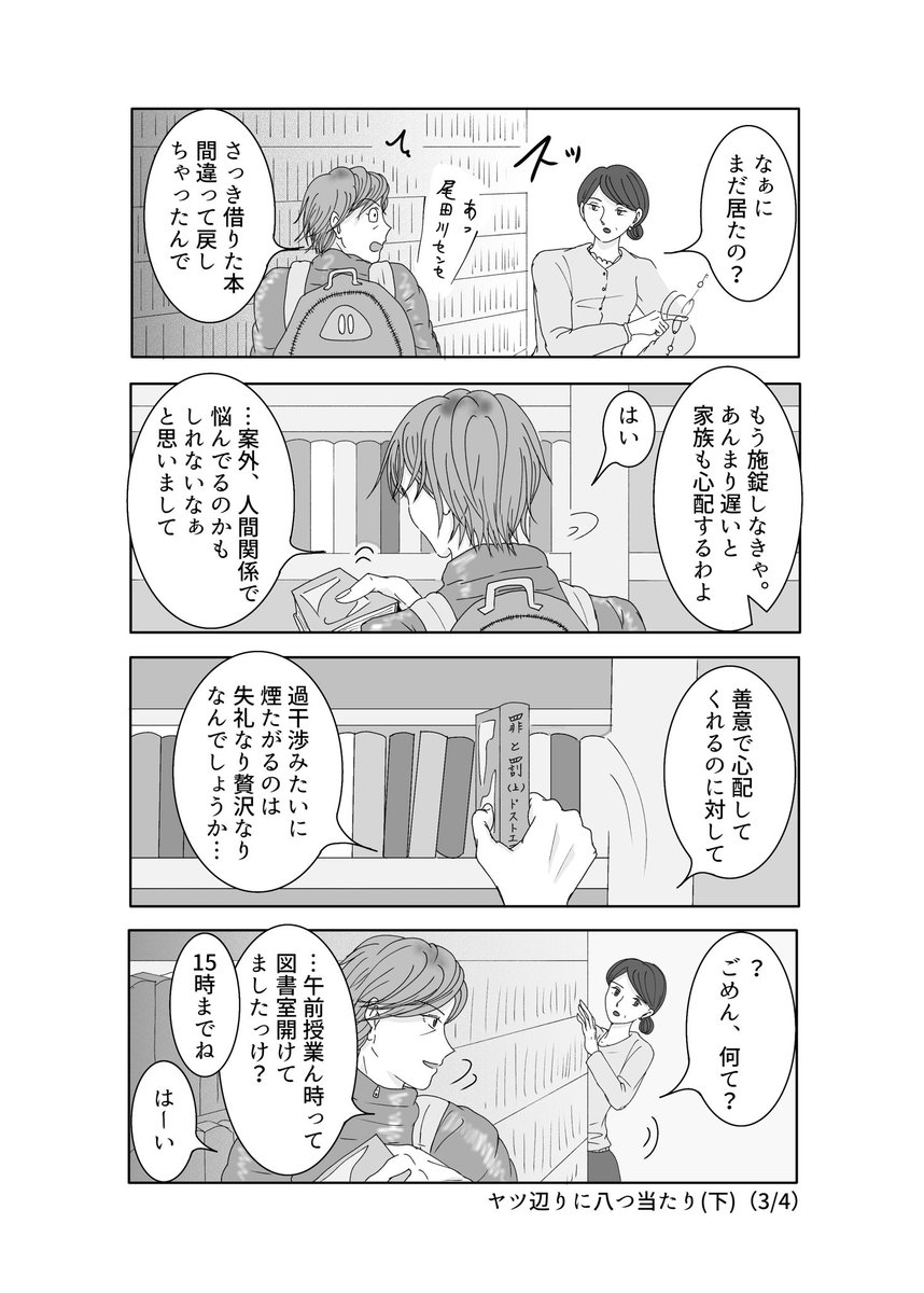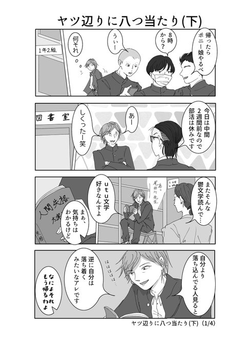 「ヤツ辺りに八つ当たり(下)」 #漫画が読めるハッシュタグ 太宰治とか萩原朔太郎とか、作品の中で他の文豪の作品を引用なり読んでるシーンがあるの激アツなndsgtj‼︎‼︎ あと太宰ファンでは無いけど、「芸術は弱者の味方だったはずだ。」的な言葉は結構好きです…