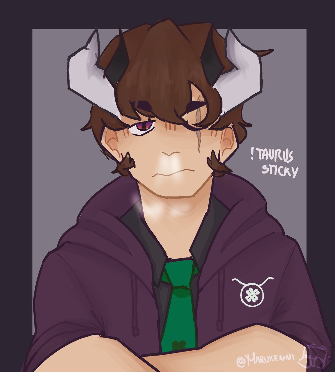 Im doing some other fanart atm so this is a design for Sticky as his zodiac sign! #StickyBMfanart The 1st is the original design and second one is him with a purple leather jacket :P