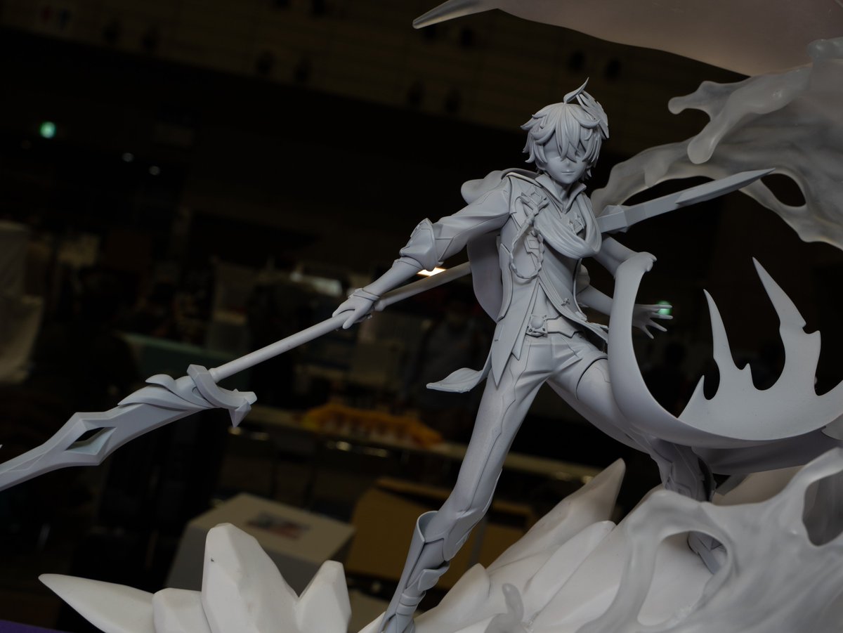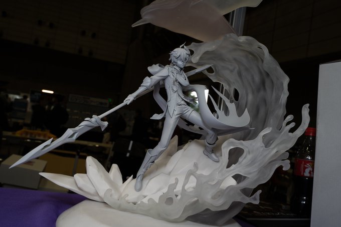 Tonyさまのエウルアと刻晴 どなたかが言ってましたけど、本当にイラストそのままじゃん!って思いながら見てました。原型も塗装も凄すぎますわ 塗った人はいったい何正さんなんだ・・・きっと氷元素の使い手に違いない🥶 #WF2023W