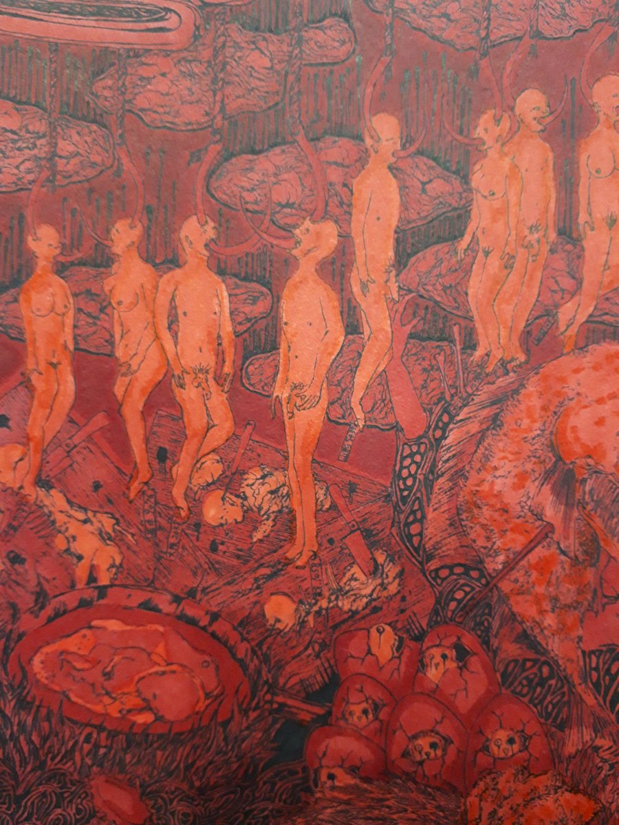 昔かいた絵をご紹介! 『無殺』 普段人間が食べている生き物。 人間は生きるためだけに食べているのか。これがもし人間だったら? という作品。 命をいただいて生きていること忘れずにいたいです。 いただきます。ご馳走さま。 たくさん食べたらうんちしよう! #イラスト #絵描き #ペン画 #食べ物