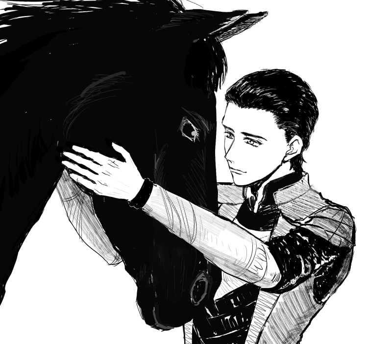 22 80 初描きロキちゃん 逸話的に馬にモテモテのはず。むしろ全動物に好かれそうなイメージ 乗馬は⚡より🐍ちゃんの方がきっと早い。 ん~~もっときゅるん目で可愛く描いても許される気がする 22/04/23 01:13