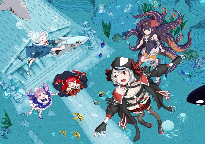 holoX コラボ始まったので記念に再掲 海属性組、コラボあるといいな。 船長とクロヱとサメちゃんに振り回されるあくたんとイナが早くみたい! #沙花叉クロヱ #コラボ記念 #さかまた飼育日記 #あくあーと #マリンのお宝 #gawrt #いなート #inART #hololivefanart #ホロライブ