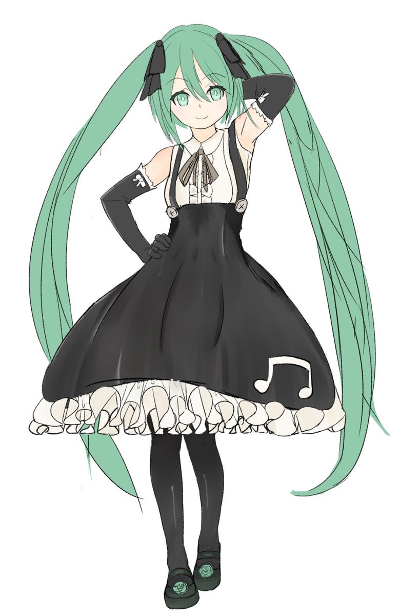 KARASU-Rさんのゴシックミクさん描いてみました! ちょっとだけ、洋服にアレンジ加えさせてもらってます。 #初音ミク