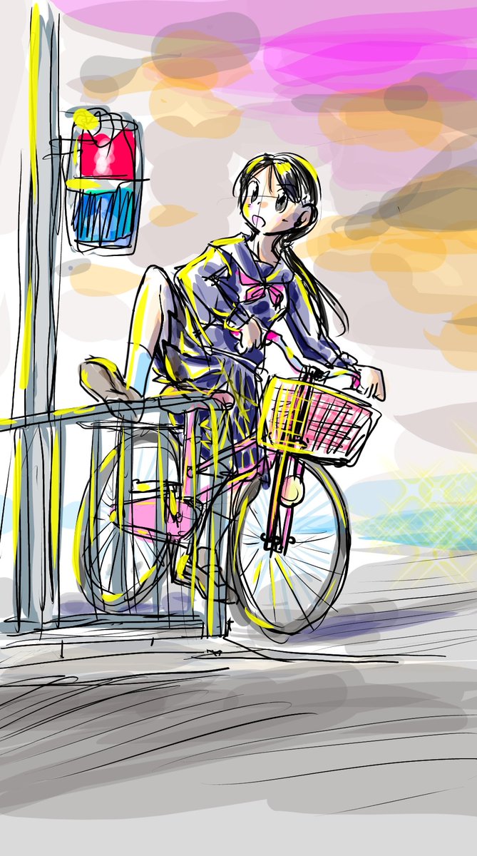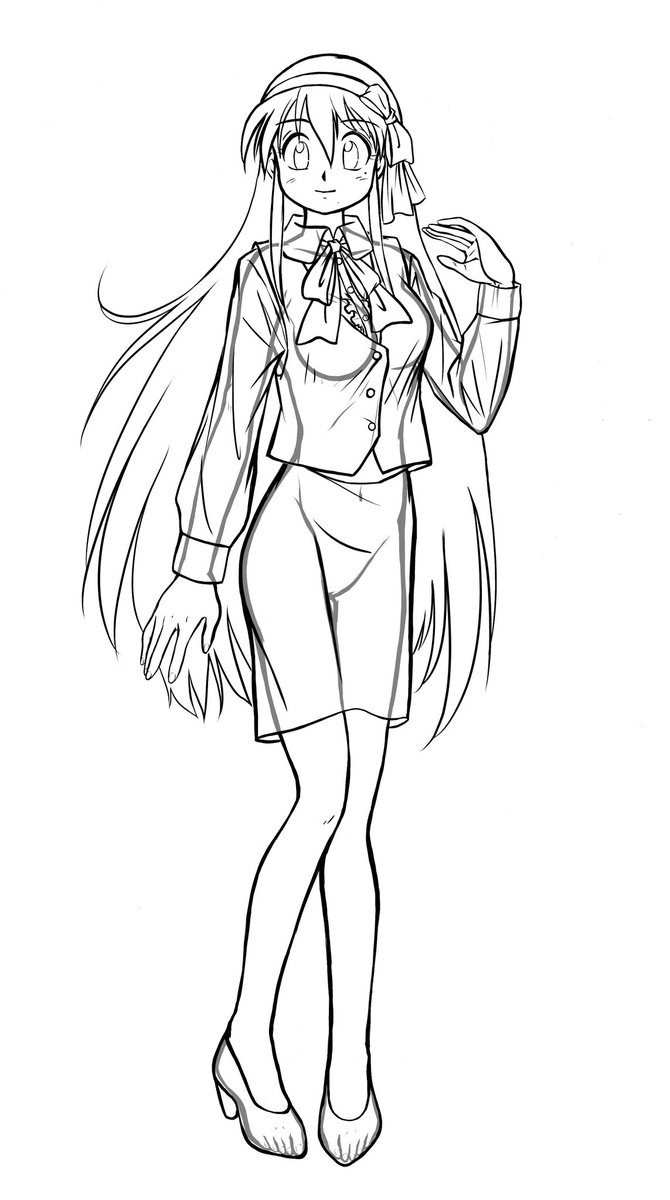 #皆さん線画と塗った後を見せてください 皆様、お早うございます☀️ うちの看板娘の #子咲志保 です。 背景なしの立ち絵でゲームの設定みたく載せてみました.*・∵゜° f(^_^)*.*・∵゜° 宜しくお願いします(#^.^#)ゞ