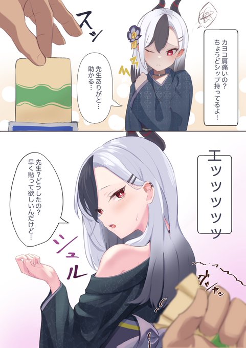 #ブルアカ 肩が凝っている着物カヨコに湿布をあげたら予想外の展開になった先生