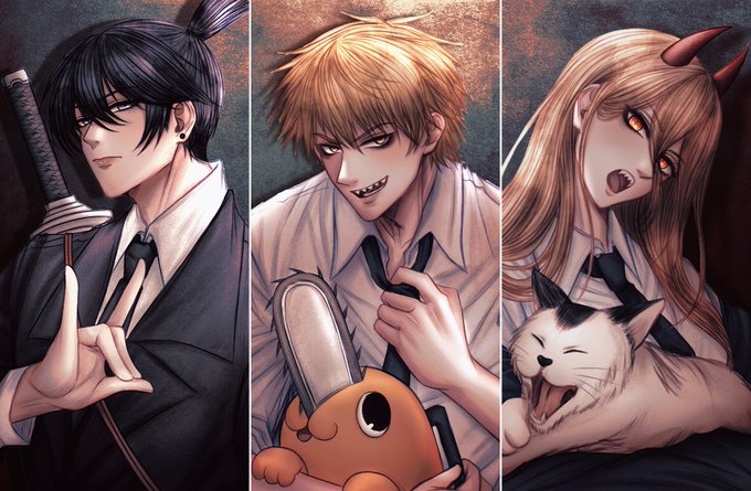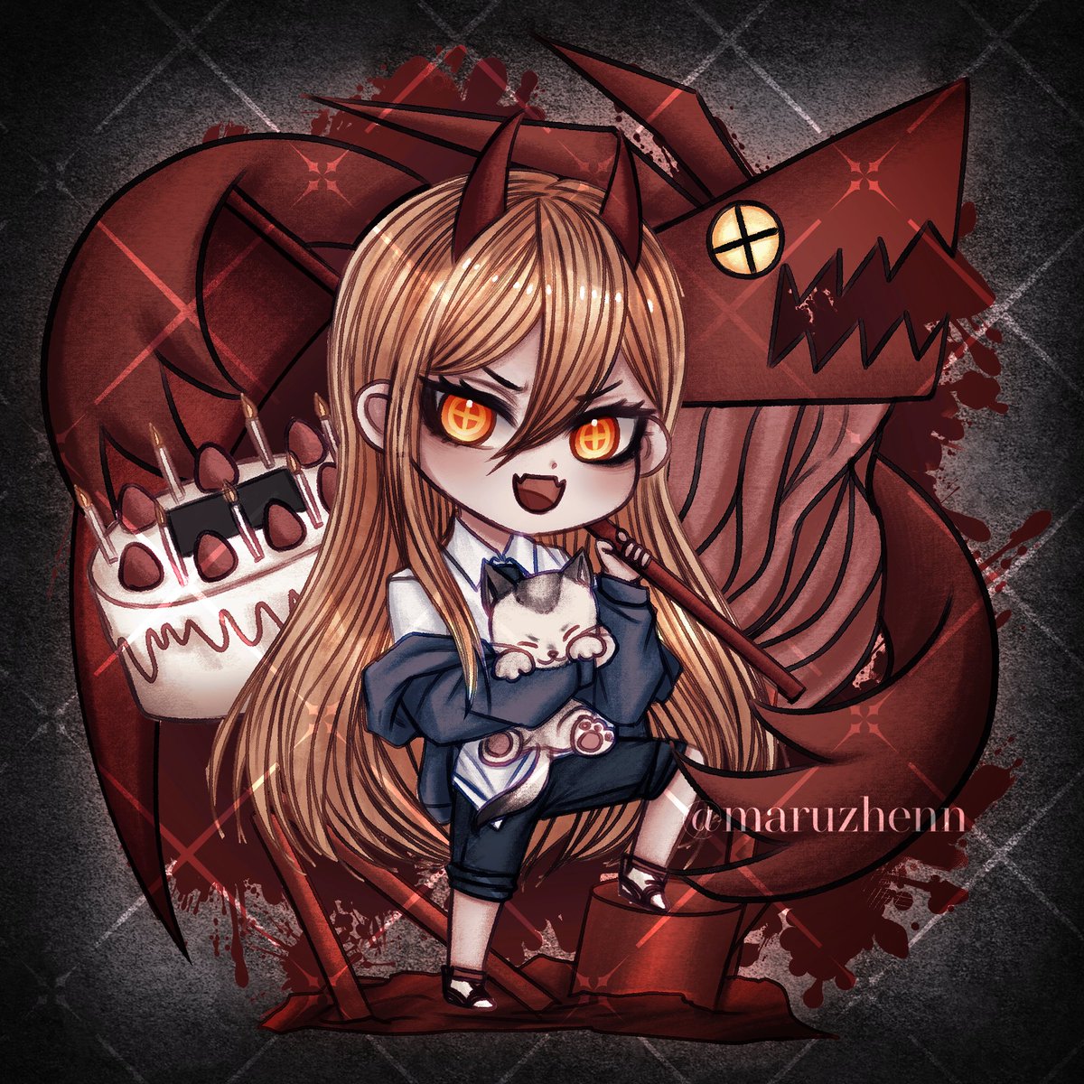 Denji (+Pochita) & Power (+ Meowy) chibi I'm getting kinda addicted to this chibi style 👀 #artidn #chainsawman #fanart