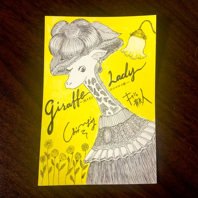 おはようございます☕️キリンの貴婦人🦒#キリン #貴婦人 #lady #TLを花でいっぱいにしよう #ペン画 #アナログイラスト #絵描きさんと繋がりたい #色鉛筆 #ゆるい絵 #みんなで楽しむTwitter展覧会 #春の創作クラスタフォロー祭り