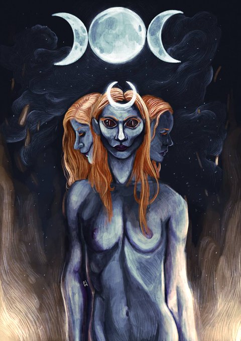 A little Bday Gift for my witch friend. My interpretation of Hecate (Godness of Magic and of crossroads). #procreateart #illustrationart #hecate #godness #horror #moon