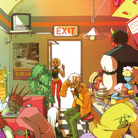 Boy&Girl展での新規絵ダイナー2名は、大昔描いたイラストの脇役リメイクでした。腕毛描くのが楽しかったです。