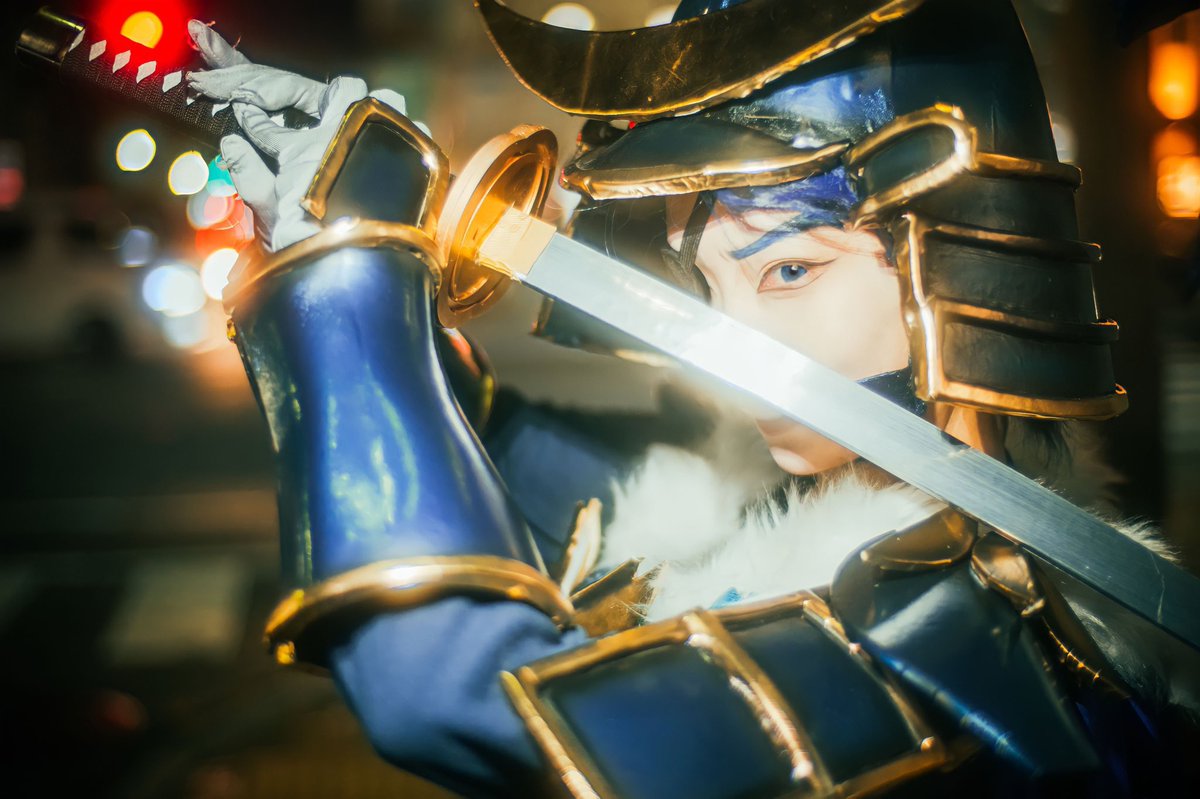 ※コス注意 大/都技/研スロット 政宗3 伊/達政宗 鎧兜製作:@nagokeisuke さん カメラマンさん:@oshyashin さん #池ハロ2022 #池袋ハロウィンコスプレフェス2022