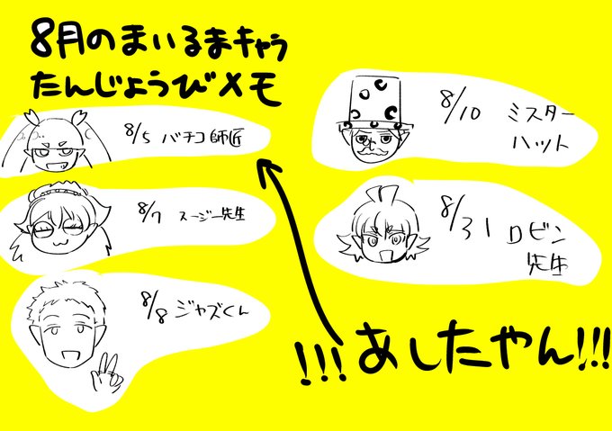 28 145 今月のまいるまキャラのお誕生日のメモだよ 23/08/04 09:19