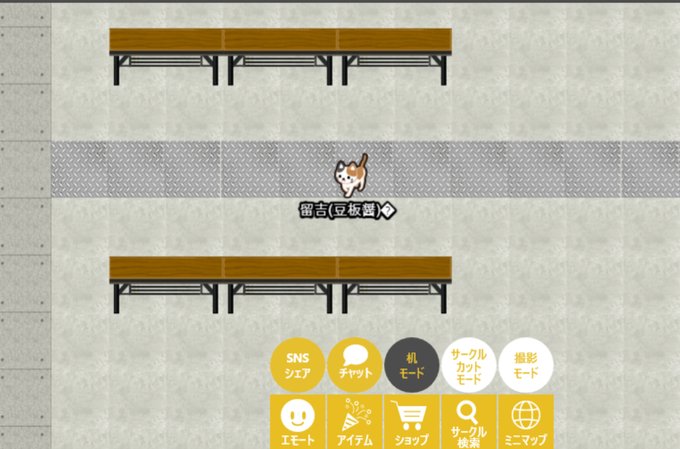 ・ピクリエはスペースが机になってて、机は連結している ・決済は各コンビニで可能 ・背景は主催がデザインして変更できる ・背景は机を置かなければ配置してないところは何もない感じにデザインできる(本来机があるところは通れない) ・ただ兎に角重い 2枚目の背景素材はすこやかセブンさん