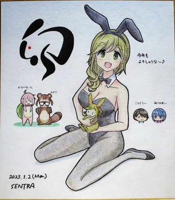 50 376 昨年はゆるキャン△フォロワーさんがどんと増えた年でした。ありがたや〜。本年もよろしくお願いいたします。 さて、今年一発目の園林への色紙はダブルあおい。例の🐇ですな。色鉛筆ならではの網タイツの表現を、是非みんなの目で見てくださいまし。 #ゆるキャン #へやキャン 23/01/02 09:33