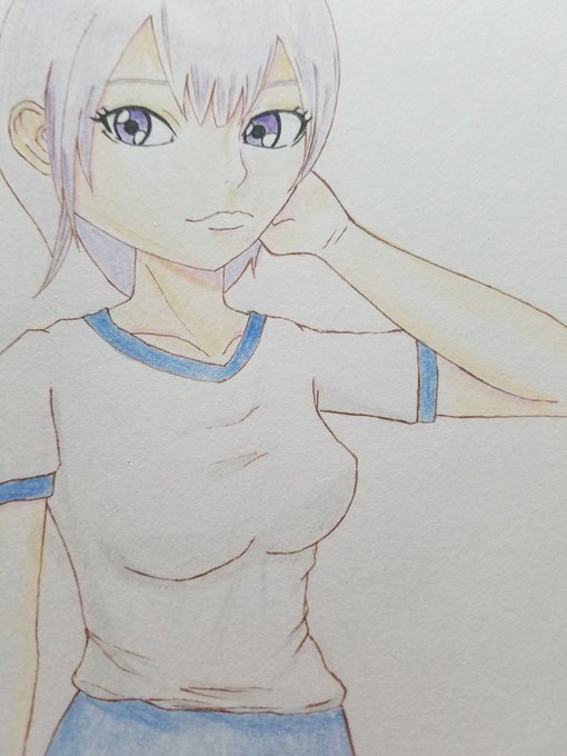 #一次創作 #冬の創作クラスタフォロー祭り #イラスト #アナログイラスト #イラスト好きな人と繋がりたい #絵描きさんと繋がりたい 体操服姿の女の子💕 綺麗な女性描きたいけど、身体が幼くなってしまぅ😖💦 もっと勉強しなきゃ🍀