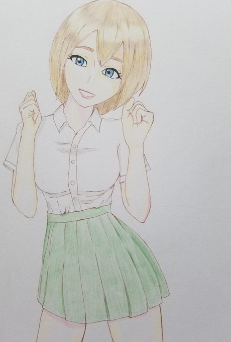 #一次創作 #冬の創作クラスタフォロー祭り #イラスト #アナログイラスト #イラスト好きな人と繋がりたい #絵描きさんと繋がりたい JKちゃん🍀 太ももぐらいまで描いてみました😌🌠 まだまだ課題たくさんだけど、少しずつ改善していこ~🐥