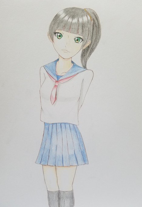 #一次創作 #冬の創作クラスタフォロー祭り #イラスト #アナログイラスト #イラスト好きな人と繋がりたい #絵描きさんと繋がりたい セーラー服ちゃん🎶 新年初のイラストです🍀 技術なくて新年イラスト描けないもどかしさ😂笑 今年はイベント絵描けるように頑張る~🐥