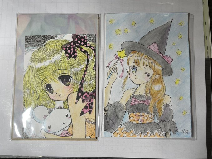 #イラスト好きな人と繋がりたい 今日帰宅すると封筒が届いてました。 ん? 展示会作品が届くには早いし… なんといちごみるくさんからサプライズプレゼントがっ @sugi_milk1290 LOVERS展の作品に着色した原画とハロウィン原画etcetc 幸せパワー、ありがとうございます❣️ もう返さないですww