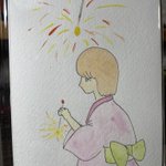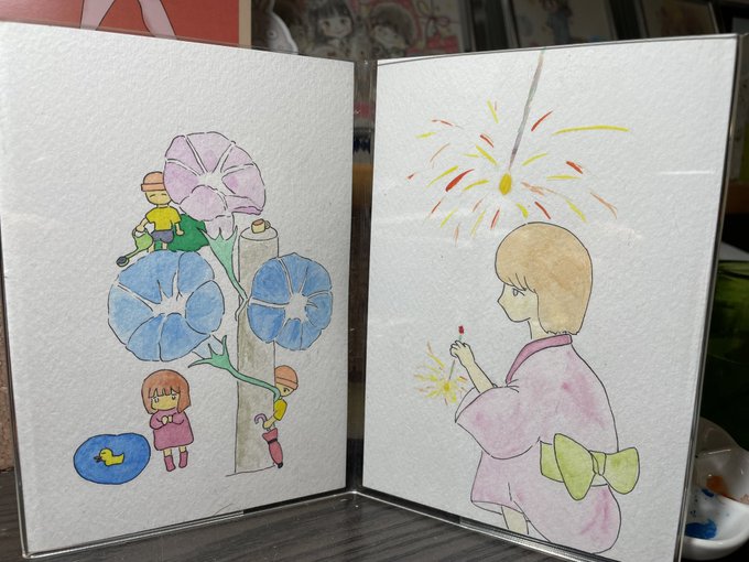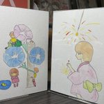 #イラスト好きな人と繋がりたい 少し手を加えて塗り忘れを塗って… 夏の鎌倉MONAさんの展示会作品完成❕ いや、自分で言うのもおかしいけど…なかなかに可愛い作品になったかも😁 しばらく飾っておこうかな